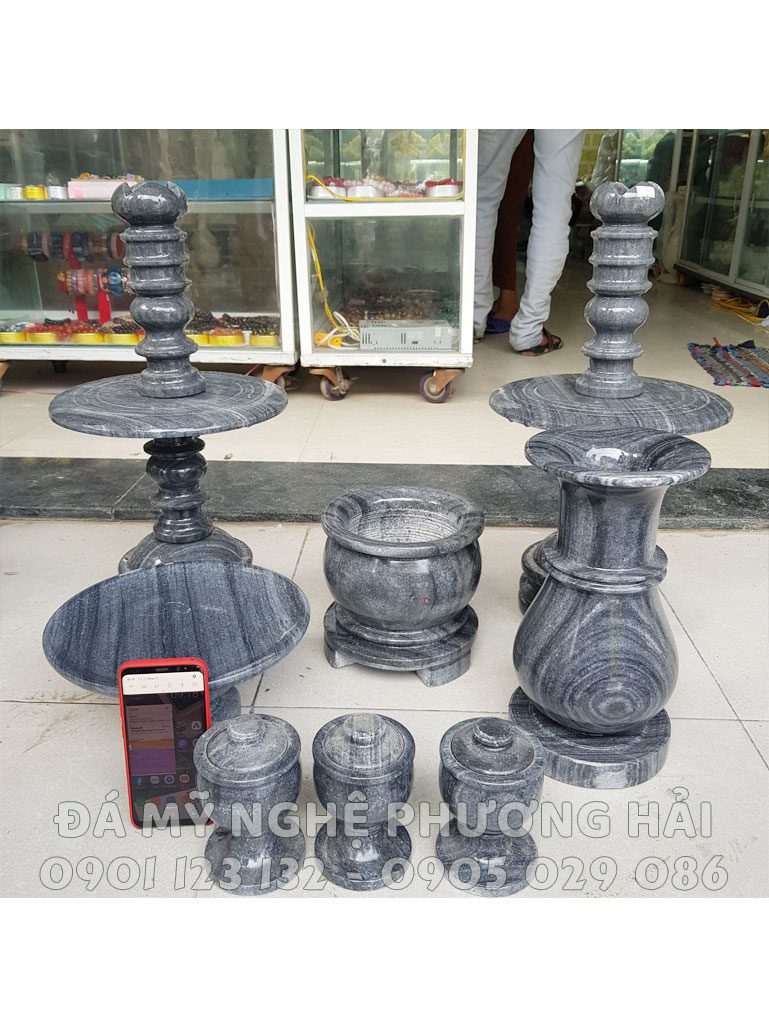 Bộ lư thờ bằng đá đen