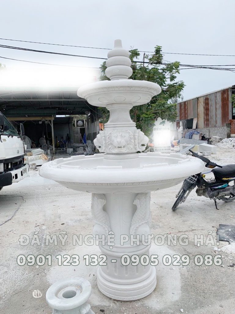 Đài phun nước đầu sư tử đá trắng