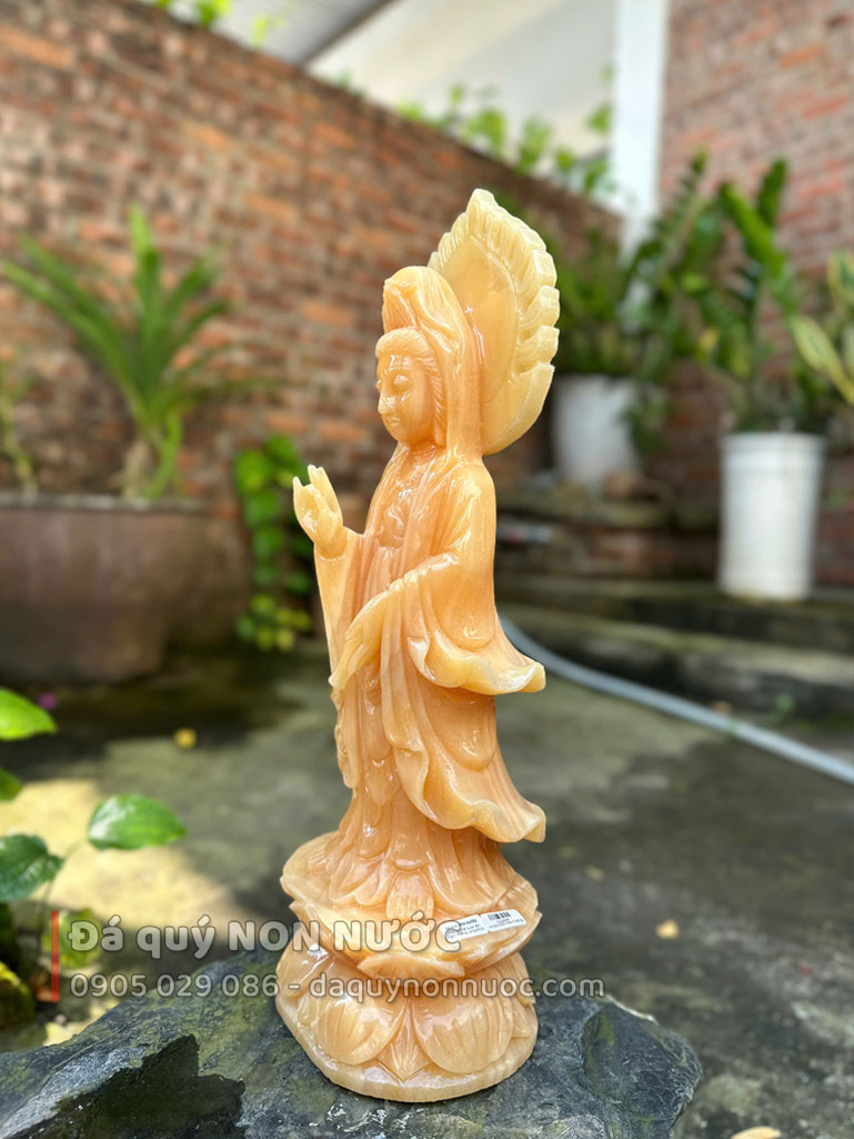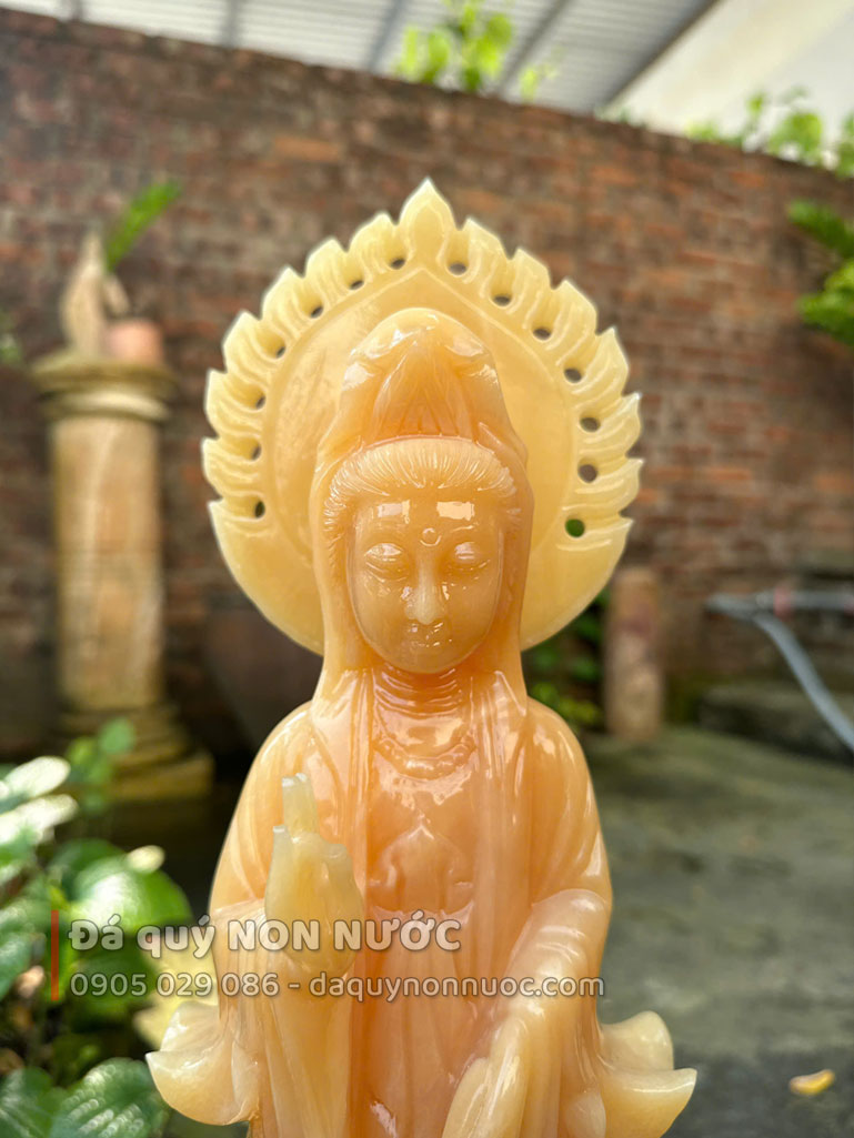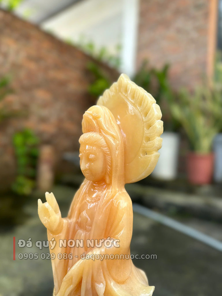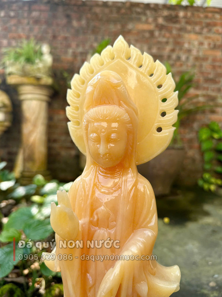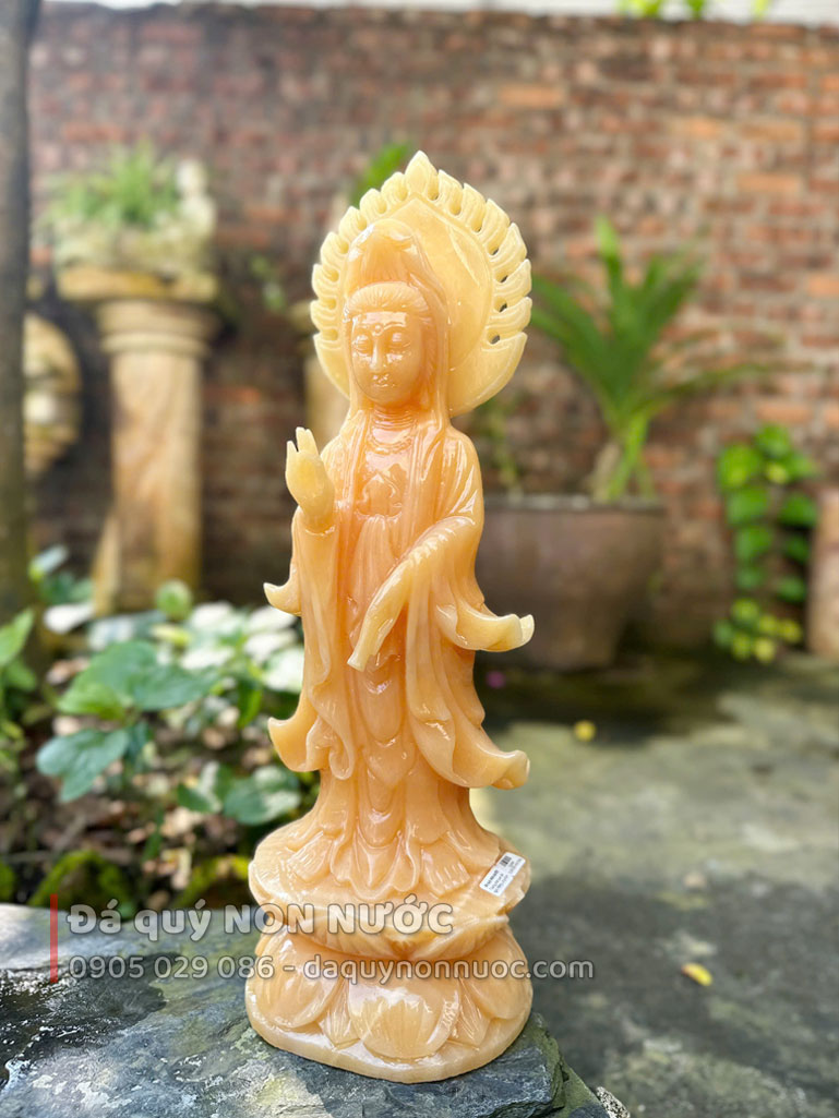 - 100% đá tự nhiên, nguyên khối - Đá được chọn lựa nguyên khối trước khi gia công, không nứt bể ghép nối (được xem đá trước khi tạc tượng) sẽ bền đẹp theo thời gian.